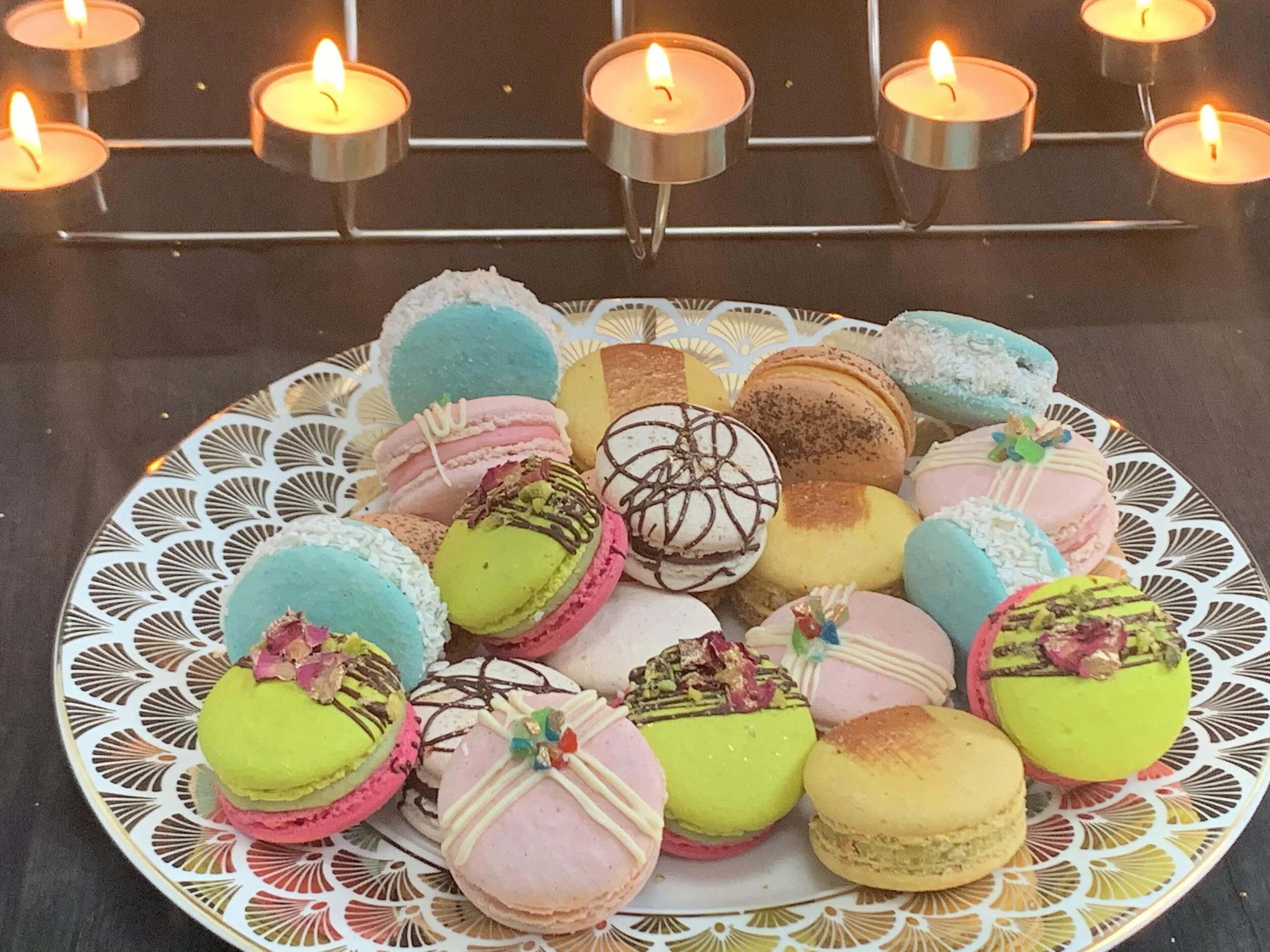 We ended up going for a classic retro Indian themed selection of Diwali vegan macaron flavours and colours.